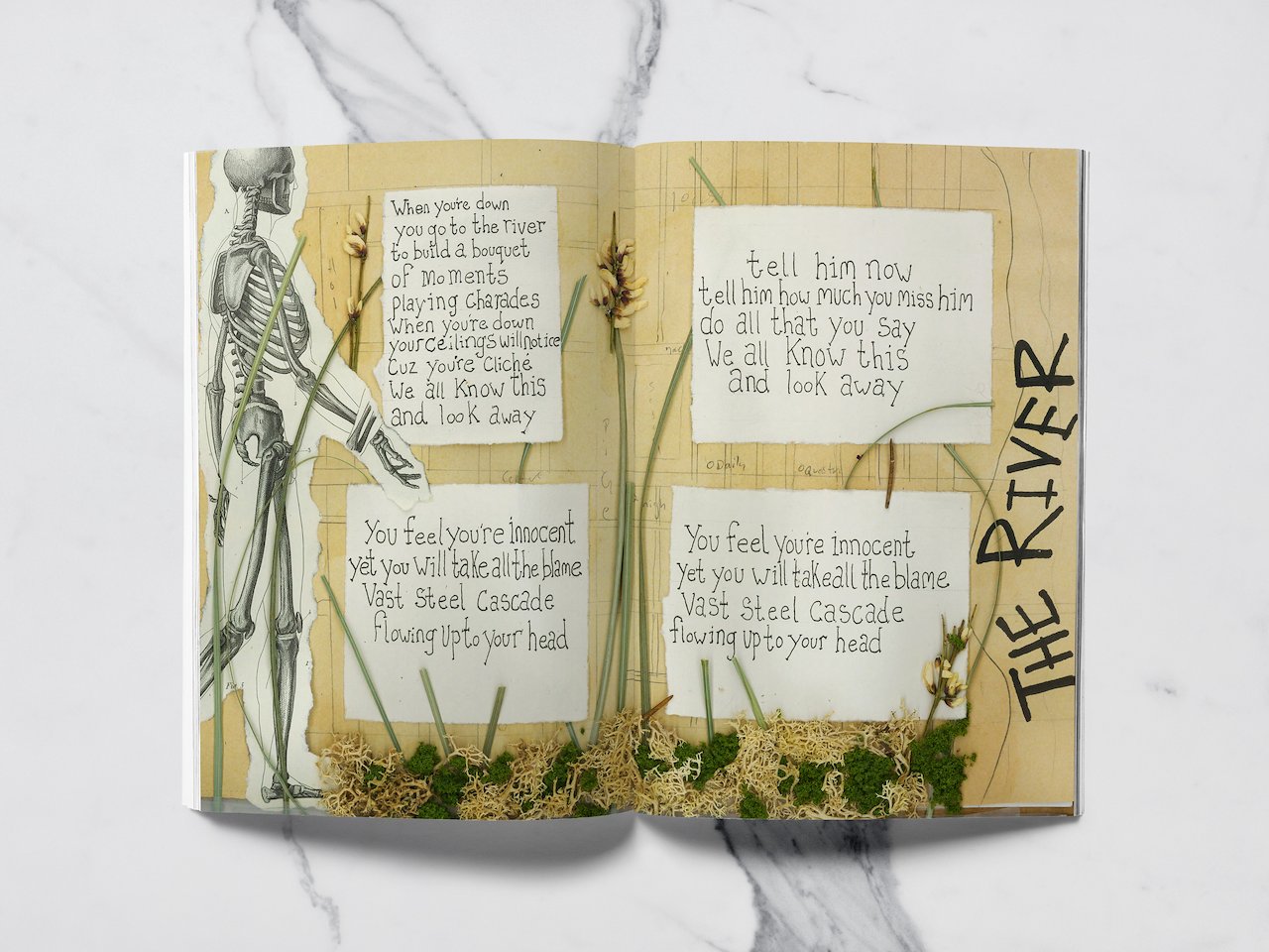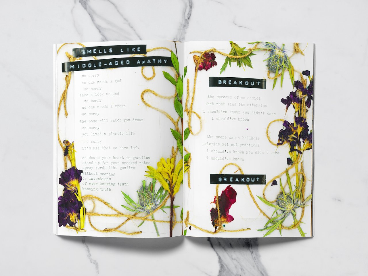 This zine was created for a local band- Social Caterpillar. This was printed and sold with their new album release. Lyrics were provided everything else was done by hand.
